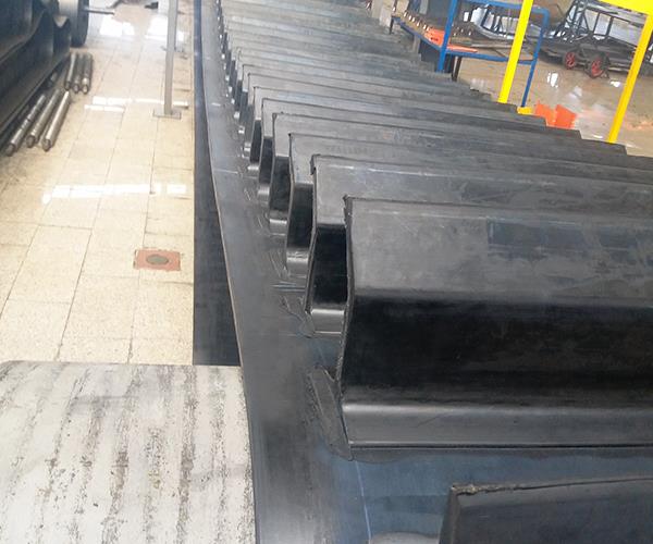目前使用的擋邊一共分為兩種:一種是平時(shí)用于給料機(jī)的環(huán)行擋邊輸送帶,另一種就是用作于大傾角擋邊帶產(chǎn)品。大傾角擋邊帶和與環(huán)形裙邊相比就是多了隔板,高傾斜度輸送帶有更多的隔板,多出來的隔板就像一個(gè)小小的料倉,這種多出來的隔板起到了將物料提升到規(guī)定的高度的一個(gè)作用。使輸送帶能呈現(xiàn)出30-90度大傾角的角度運(yùn)輸。